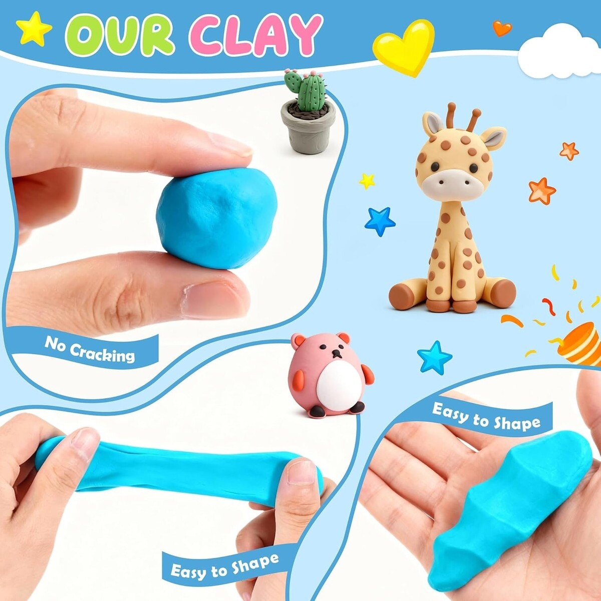 Perfectly suited for budding artists aged 3 and above, our clay set is an ideal birthday or holiday present.