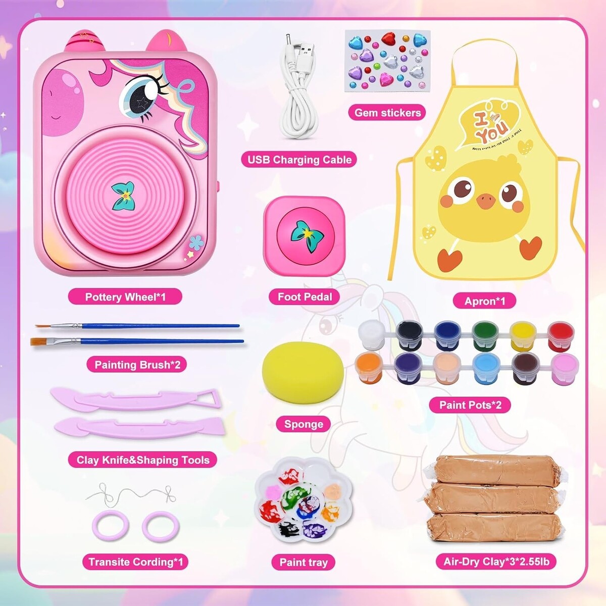 Kids Pottery Wheel Art Set ? Unicorn Theme
