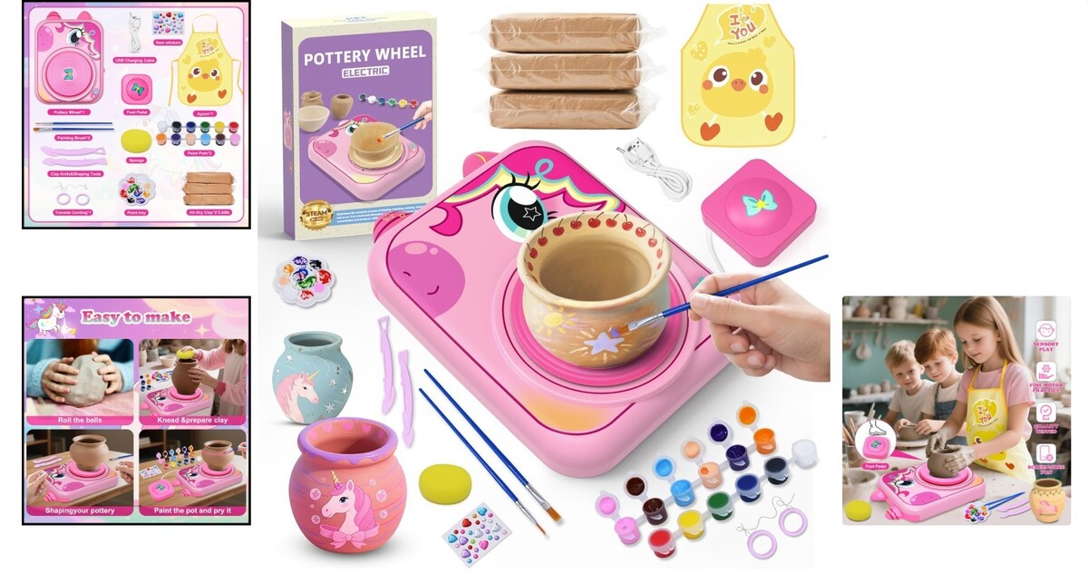 Choose this Unicorn Pottery Wheel Art Set for a gift that inspires creativity, builds skills, and offers endless fun!