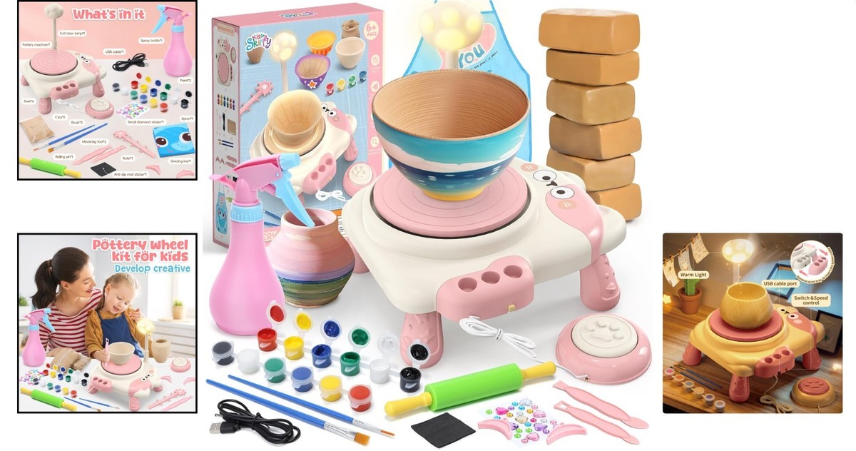 Complete Pottery Wheel Kit for Kids Ages 6-12 – Light, Clay & Painting Extras