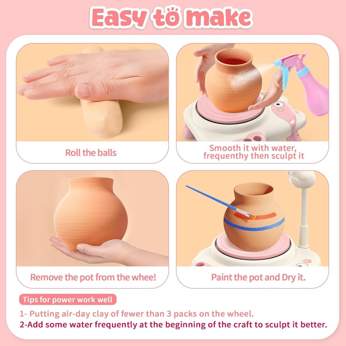 This pottery wheel is designed specifically for girls aged 8-12 just starting their pottery journey. With adjustable speed settings, young artists can control the rotation according to their skill level. Whether crafting their first simple shape or attempting intricate designs, the easy-to-use controls ensure a smooth and enjoyable experience. It's the perfect Christmas gift for budding creatives!