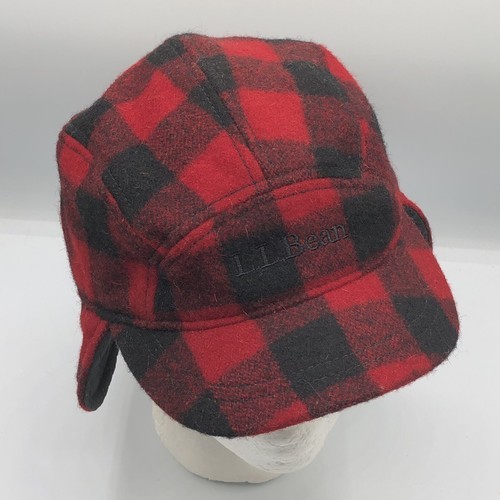 Ll Bean Buffalo Plaid Wool Blend Lined Hunting Trapper Hat with Ear Flaps