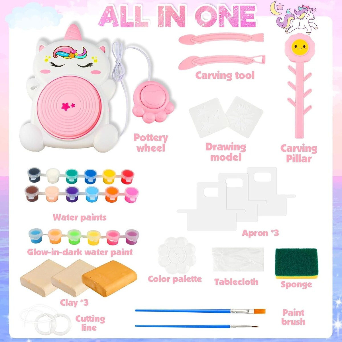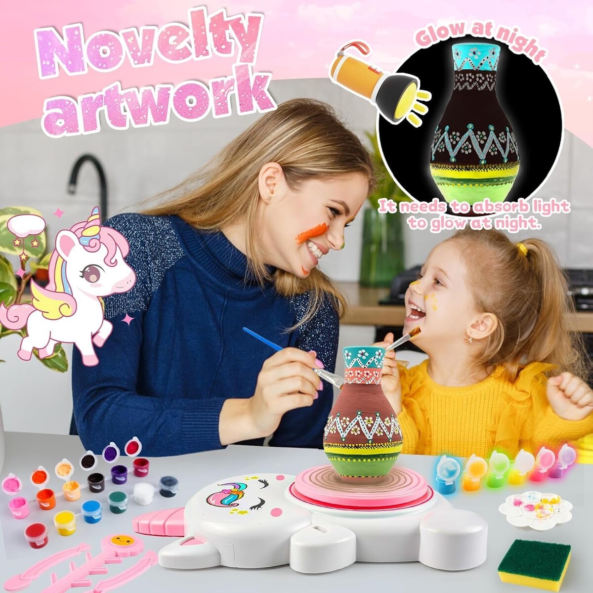 Magical Unicorn Pottery Wheel Kit with Glow Paints - Fun Art Supplies for Kids