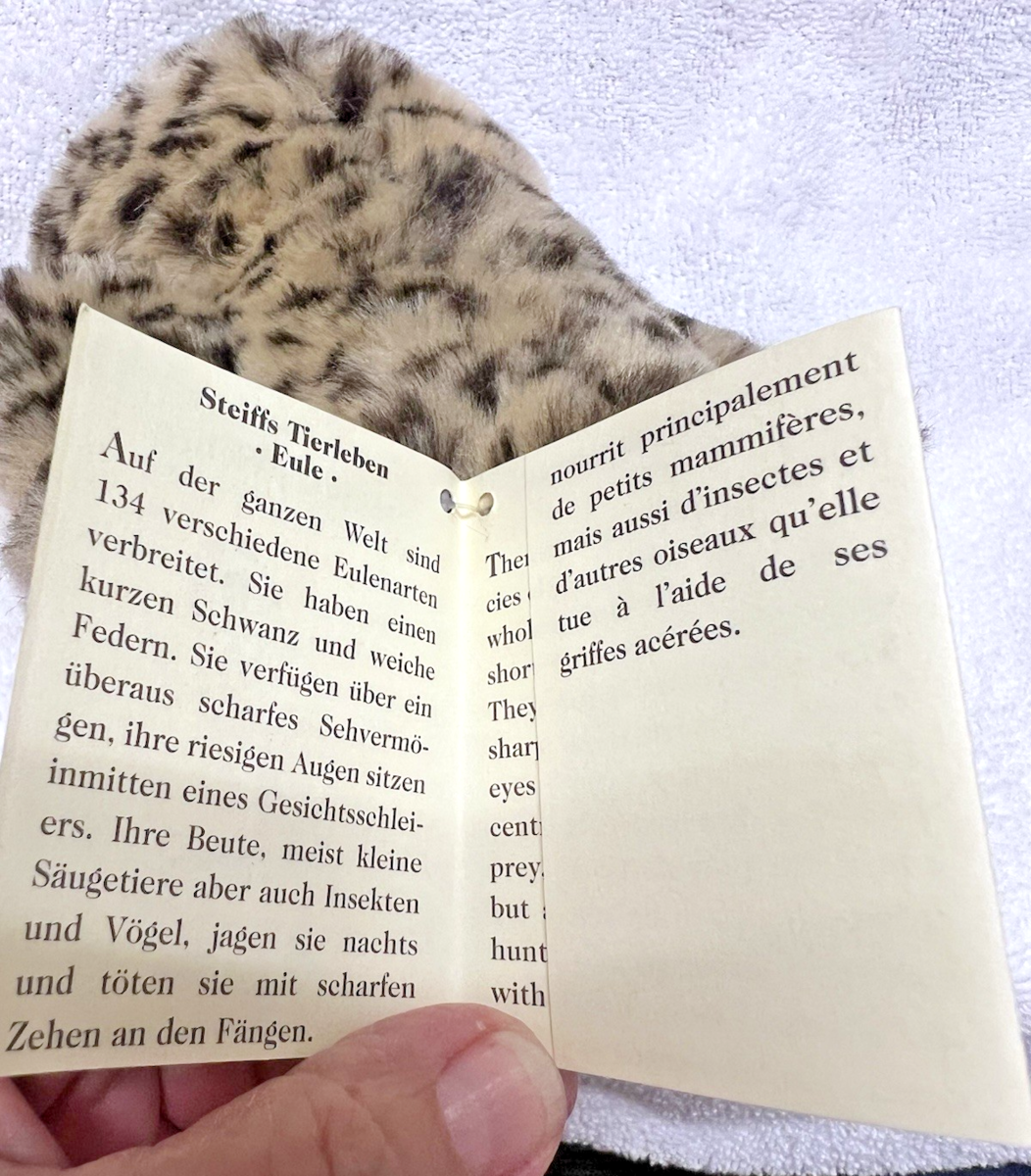 Steiff Wittie Owl w Original Tags and Button 7 inches Nice Clean Shape