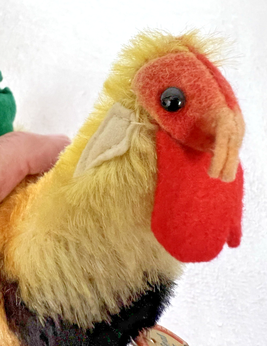 Vintage Steiff Rooster Chicken Original Tag Green Tail Mohair No Button 6" Tall