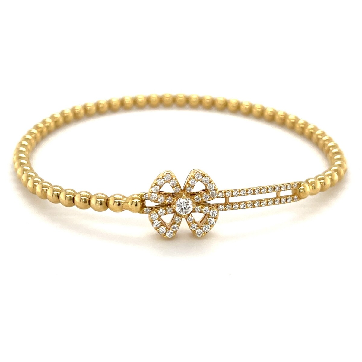 18k Yellow Gold Beaded Stretch 0.40 ct Diamond Flower Slider Bracelet