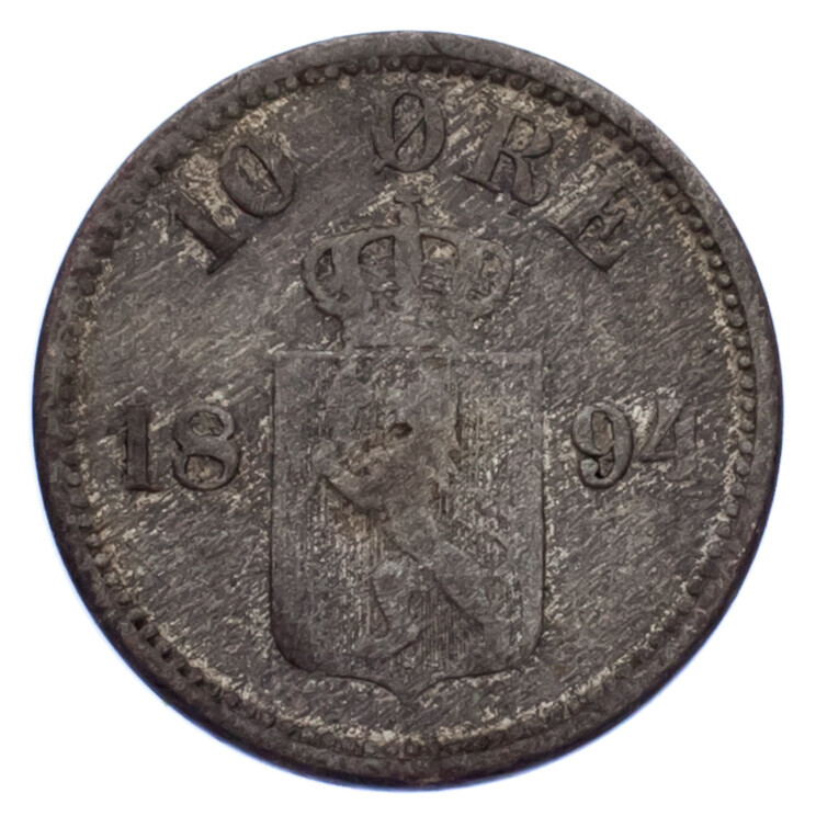 1894 Norway 10 Ore, Fine (F), KM#350, 0.400 silver (1,500,000)