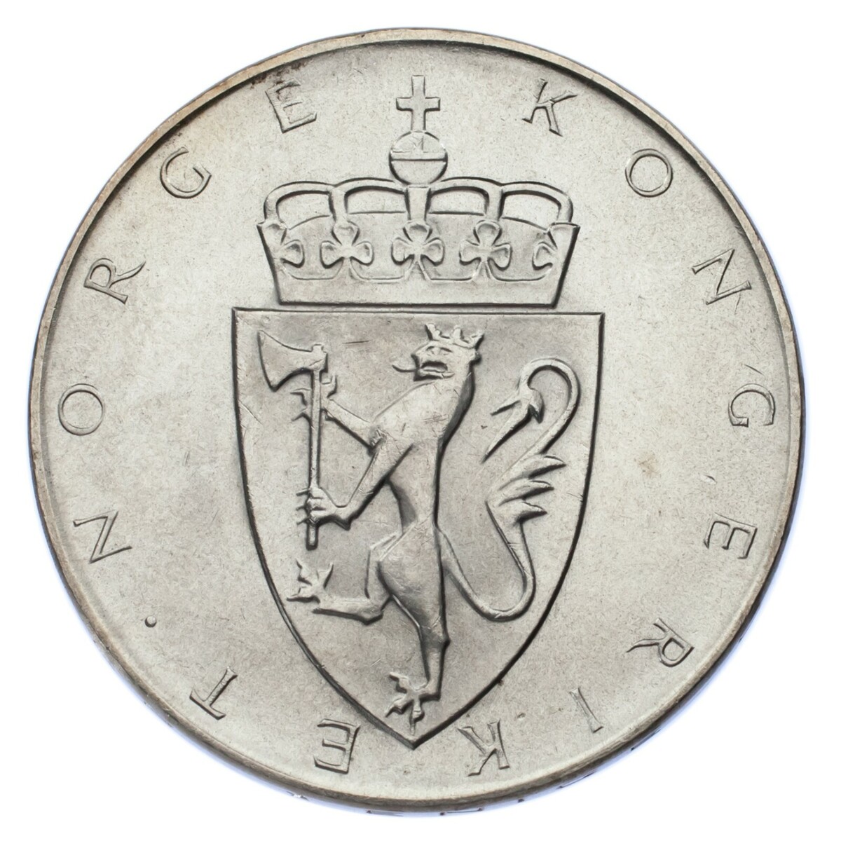 1964 Norway 10 Kroner, Brilliant Uncirculated (BU), KM#413, 0.900 silver (1,408,000)