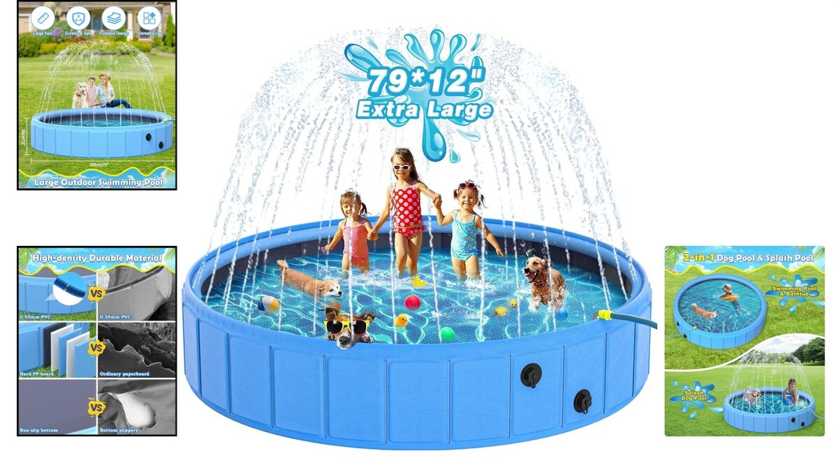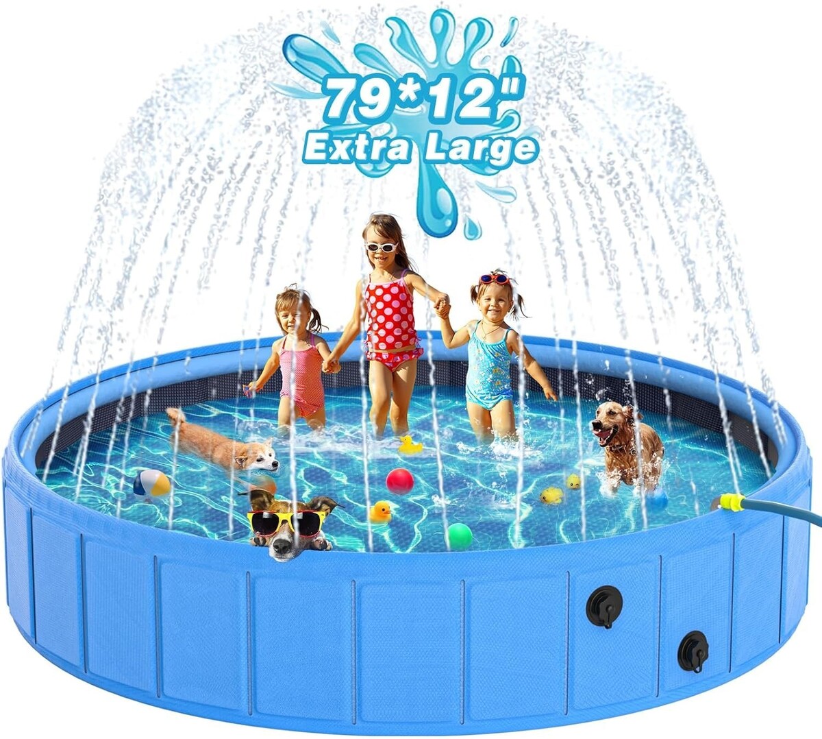 Foldable Portable Pet Splash Pool – 79-Inch Bathtub & Sprinkler for Dogs & Kids