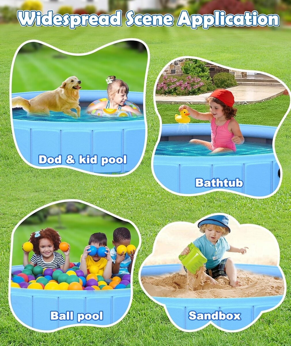 Large Size and Versatile Use: At 79'' wide and 12'' deep, this pool accommodates pets and people alike, ideal for use as a dog toy pool, kiddie pool, outdoor pool, and more.