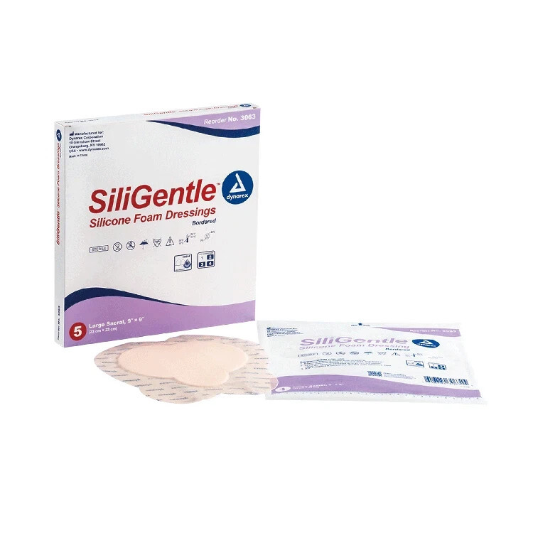 Dynarex SiliGentle - Silicone Bordered Foam Dressing Size 9x9 Item 3063 -5/Case