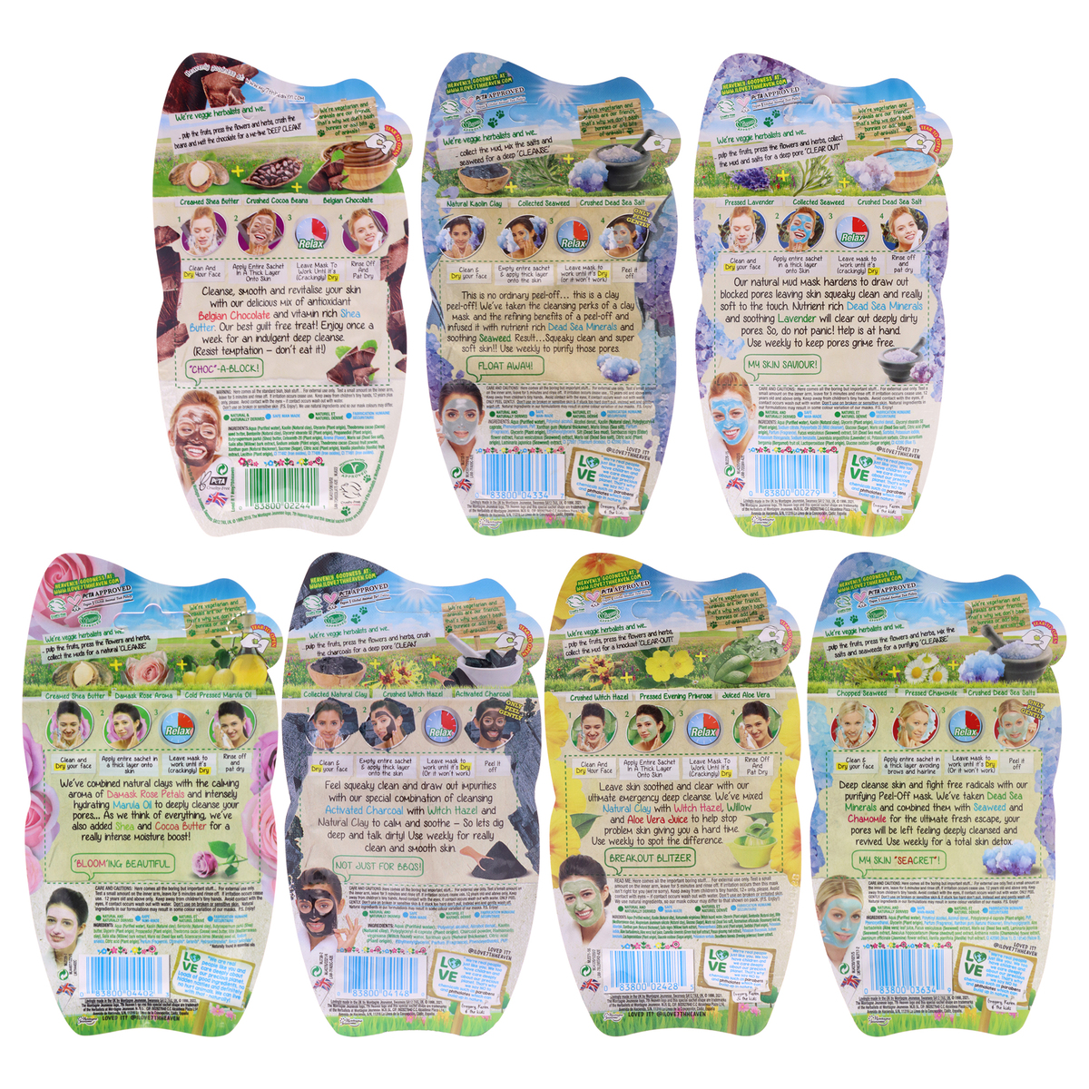 The face mask set features seven different masks, each targeting specific skincare needs from deep cleansing to hydration. The masks feature mineral-rich ingredients that hydrate, detoxify, revitalize and purify the skin. Each mask is vegetarian and cruelty-free.