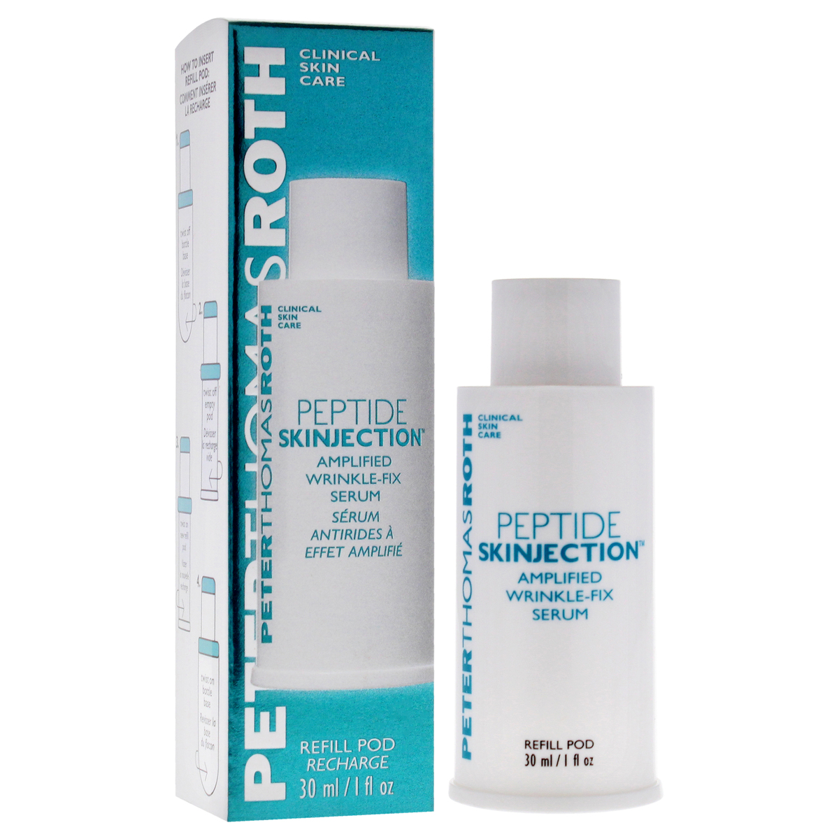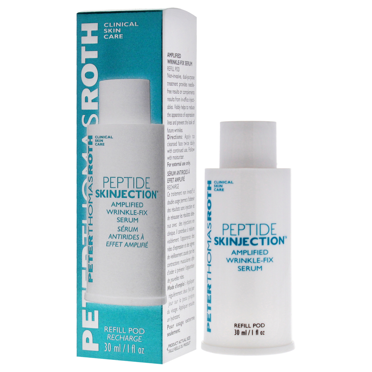 PETERTHOMASROTH CLINICAL SKIN CARE PEPTIDE SKINJECTION Amplified Wrinkle-Fix Serum is a non-invasive, dual-purpose treatment that provides needle-free results or complements results from in-office injectables.