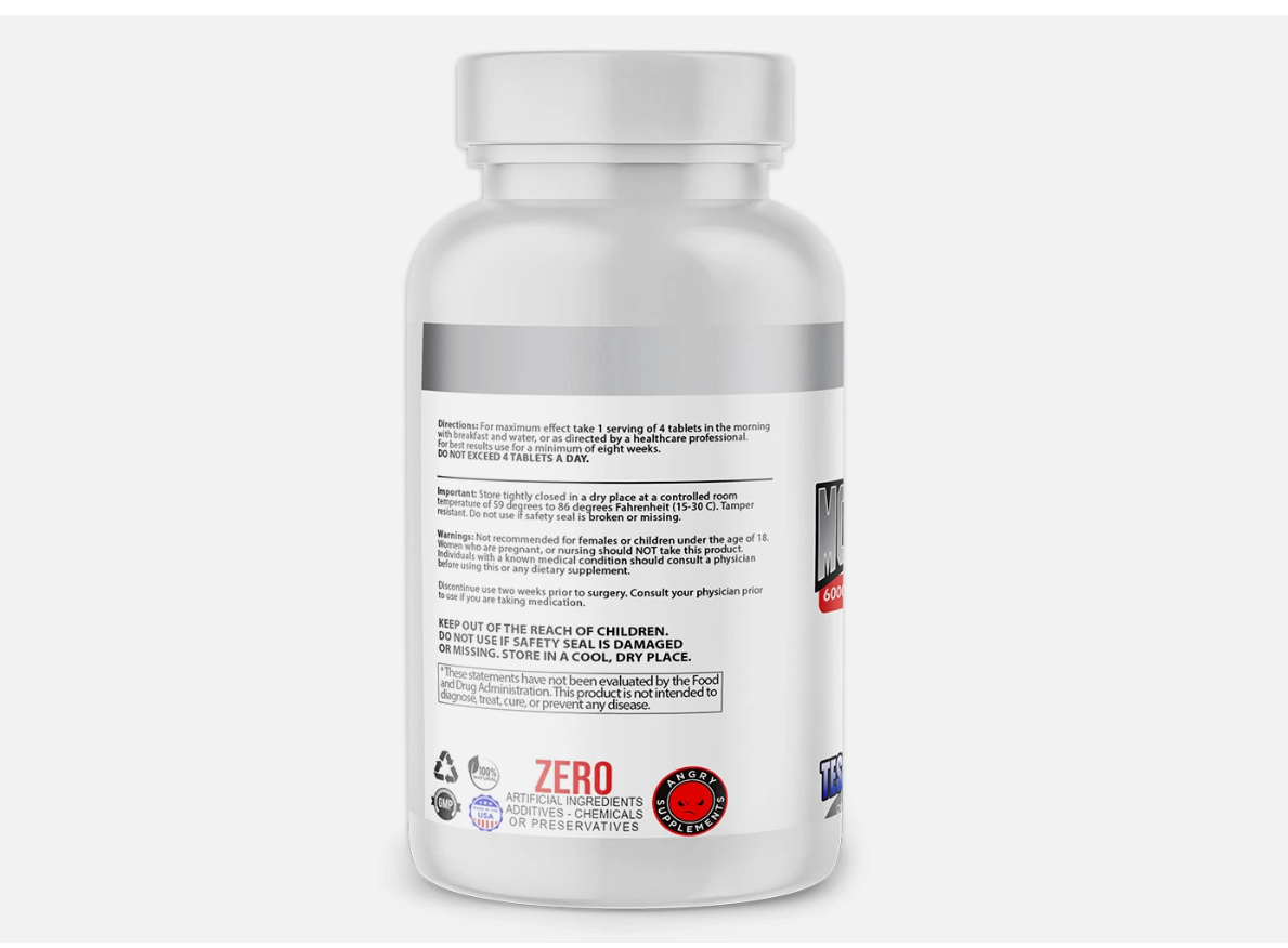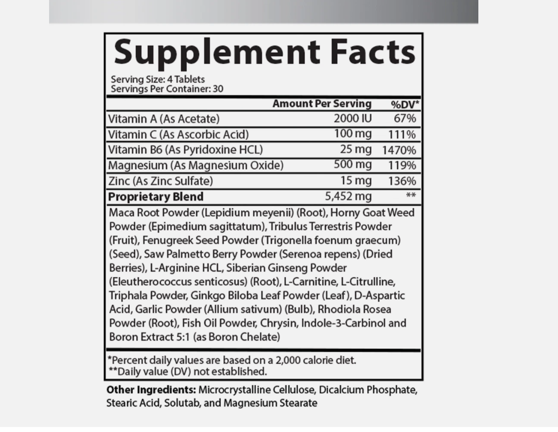 NOT FOR FEMALE CONSUMPTION. Do not exceed recommended dose. Pregnant or nursing mothers, children under the age of 18, and individuals with a known medical condition should consult a physician before using this or any dietary supplement.
