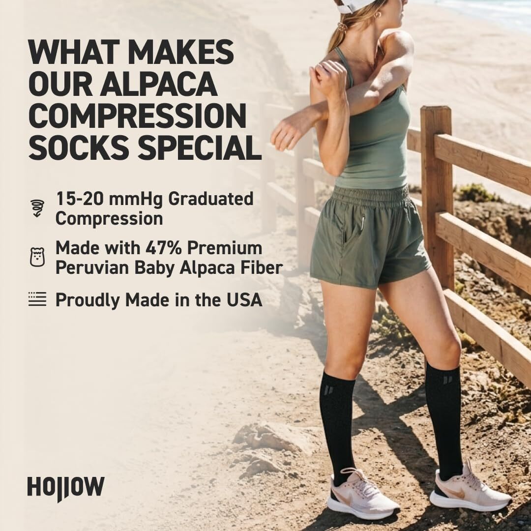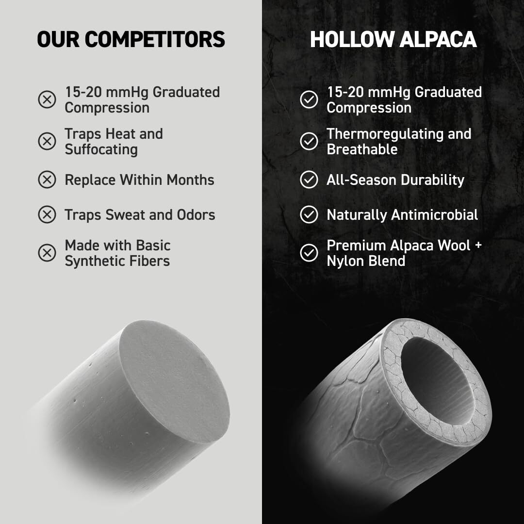 Description HOLLOW Alpaca Wide Compression Socks Circulation Socks for Men and Women, Moisture Wicking Alpaca Wool Socks for Hiking, Running, Temperature Regulating Comfortable