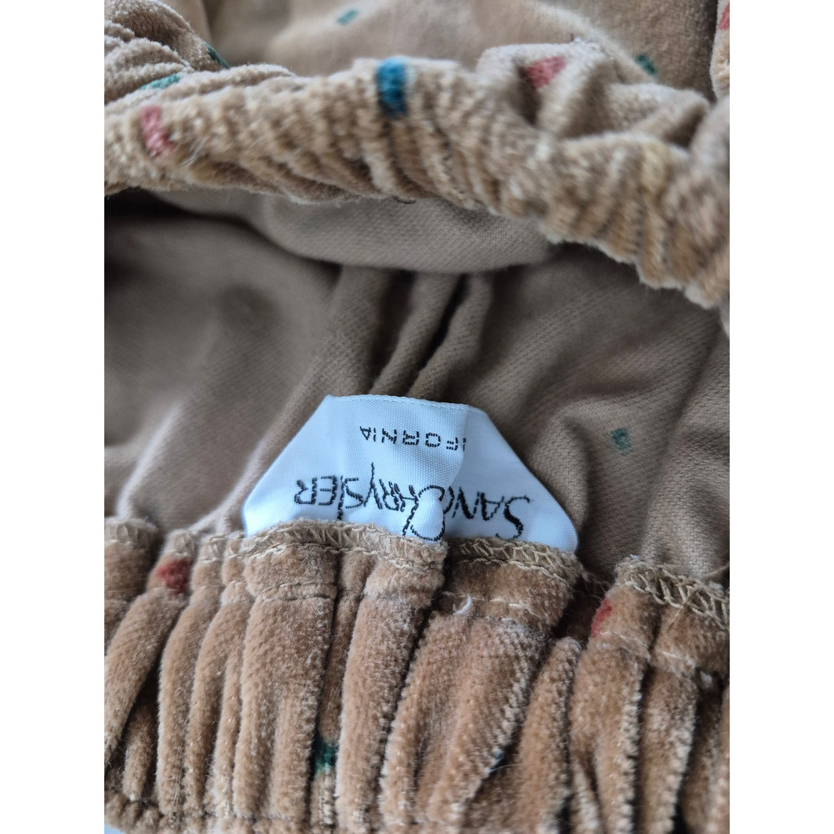 Vtg 80s Sandy Chrysler California Velour High Neck Skirt Suit of plush no wale corduroy in Brown with Confetti print M/L in excellent condition. No flaws.