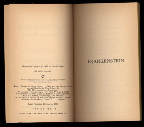 FRANKENSTEIN by Mary Shelly * 1965 Signet Paperback Harold Bloom-after word