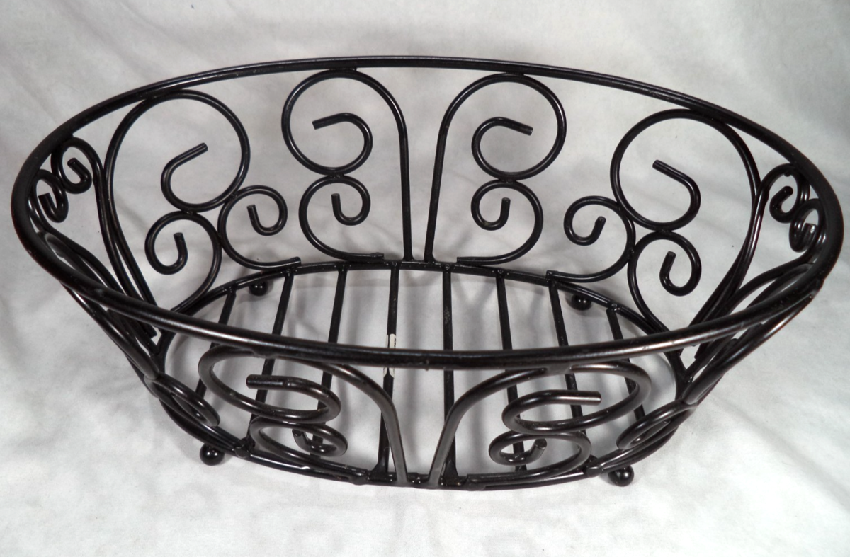 Black Metal Wire Fruit Bowl Scrolled Basket Centerpiece Home Decor Oval
