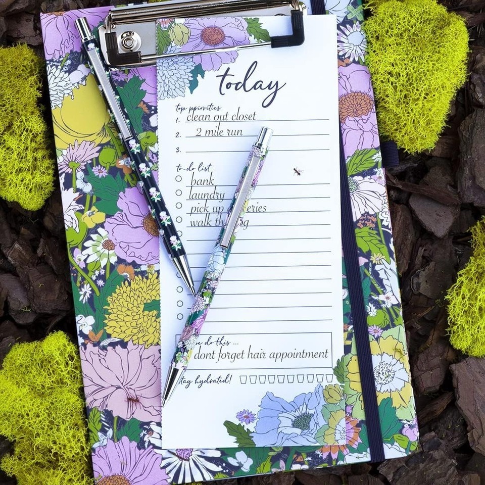 Vera Bradley Metal Pen and Pencil Set, Black Ink Ballpoint Pen Bloom Boom