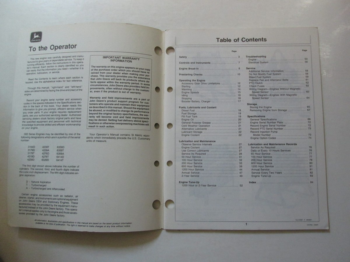 John DEERE 300 Series engines Operator's Manual OM-RG16407 Issue F7