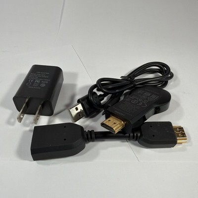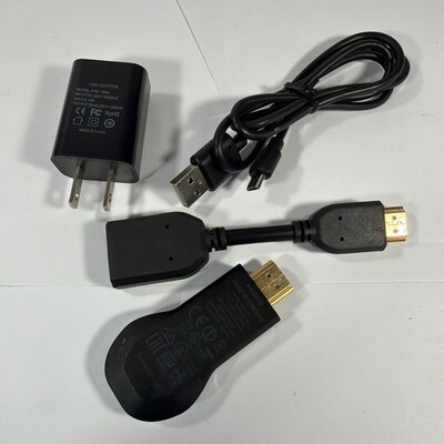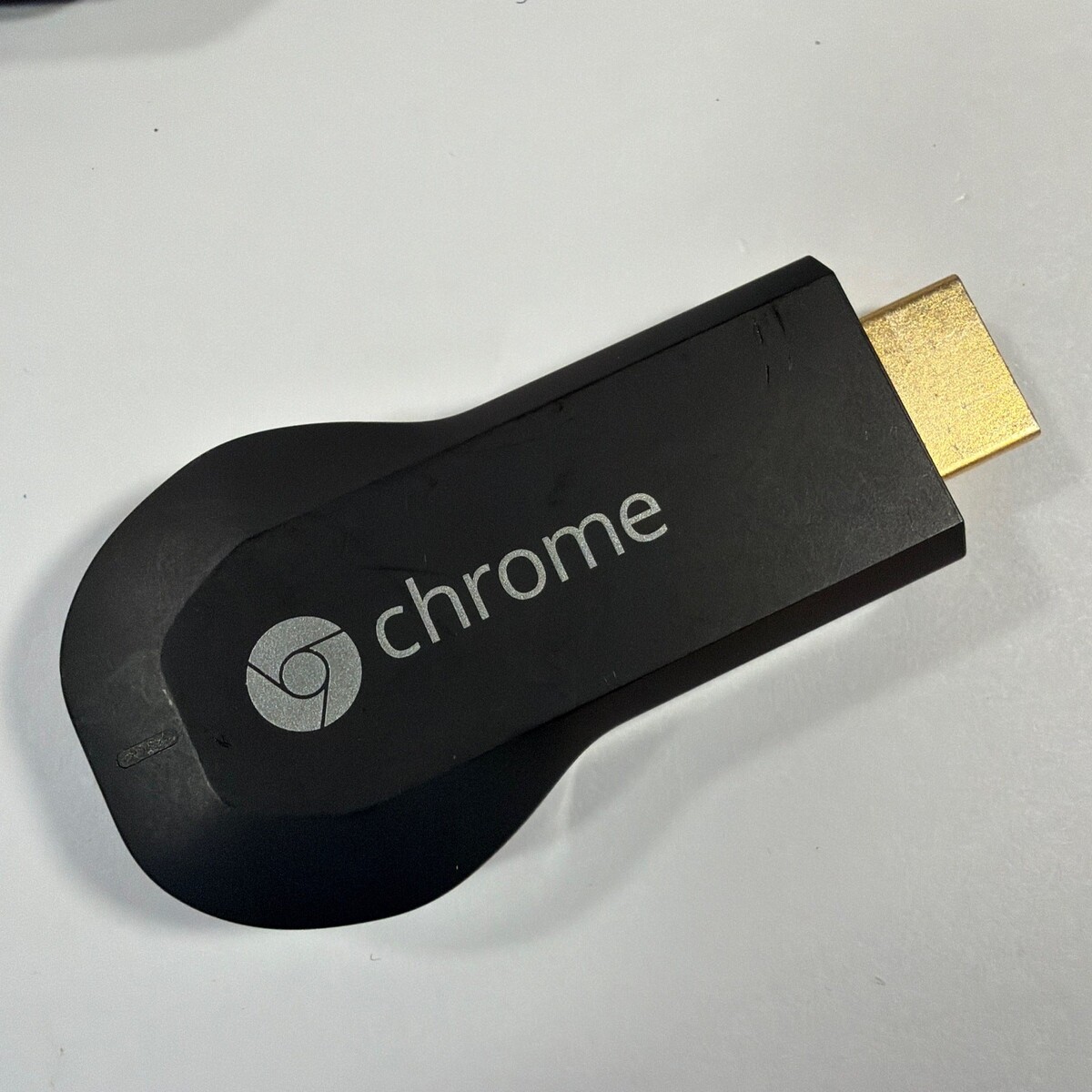 Google Chromecast (1st generation) model H2G2-42 in black. Tested working and reset. Includes Chromecast dongle, HDMI extender, USB power cable, and wall power adapter. Pre-owned with light cosmetic wear that may include small scuffs/marks from normal use.