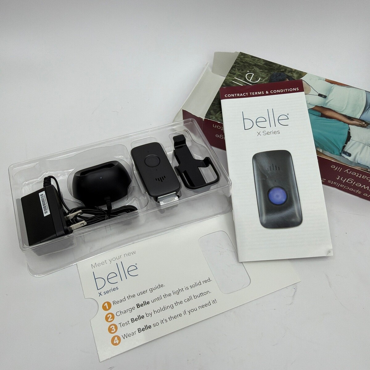 Belle X Series mobile medical alert system from Life Protect 24/7. Appears unused and includes the device, charging dock, and power adapter shown; the retail box has light wear from storage. Service/activation may be required for use, and it has not been tested.