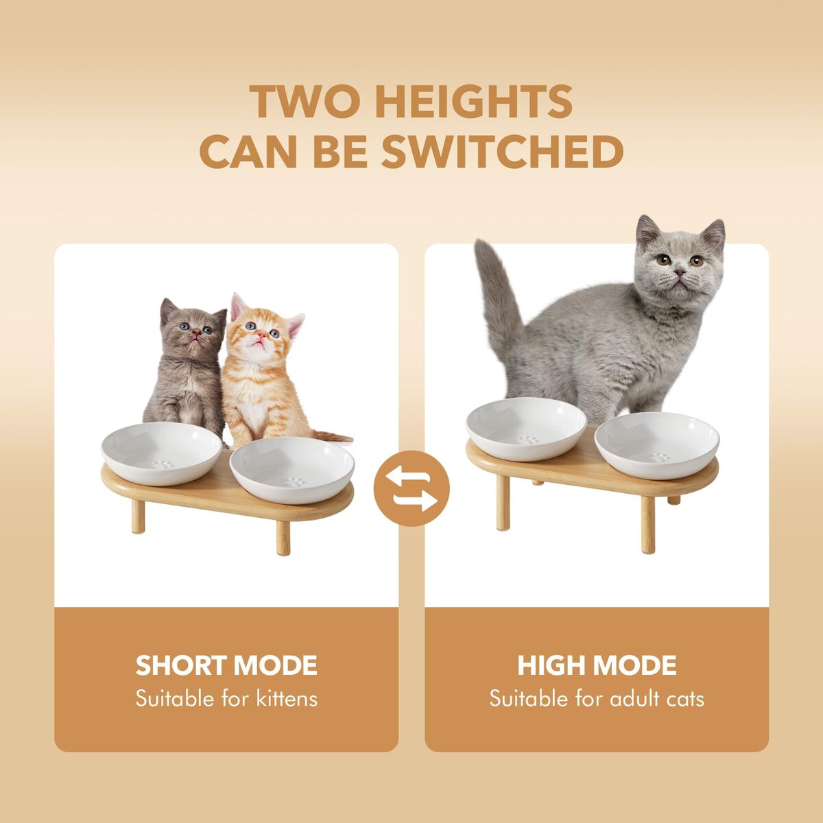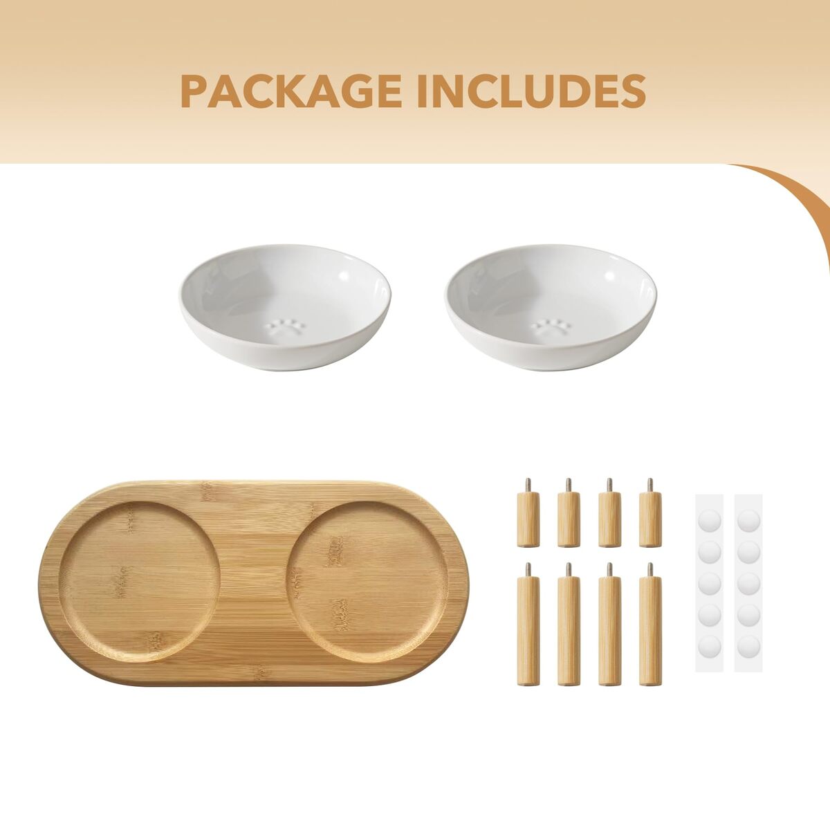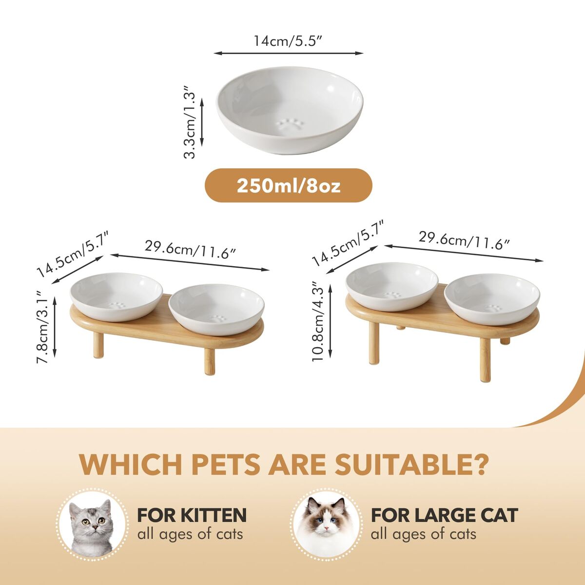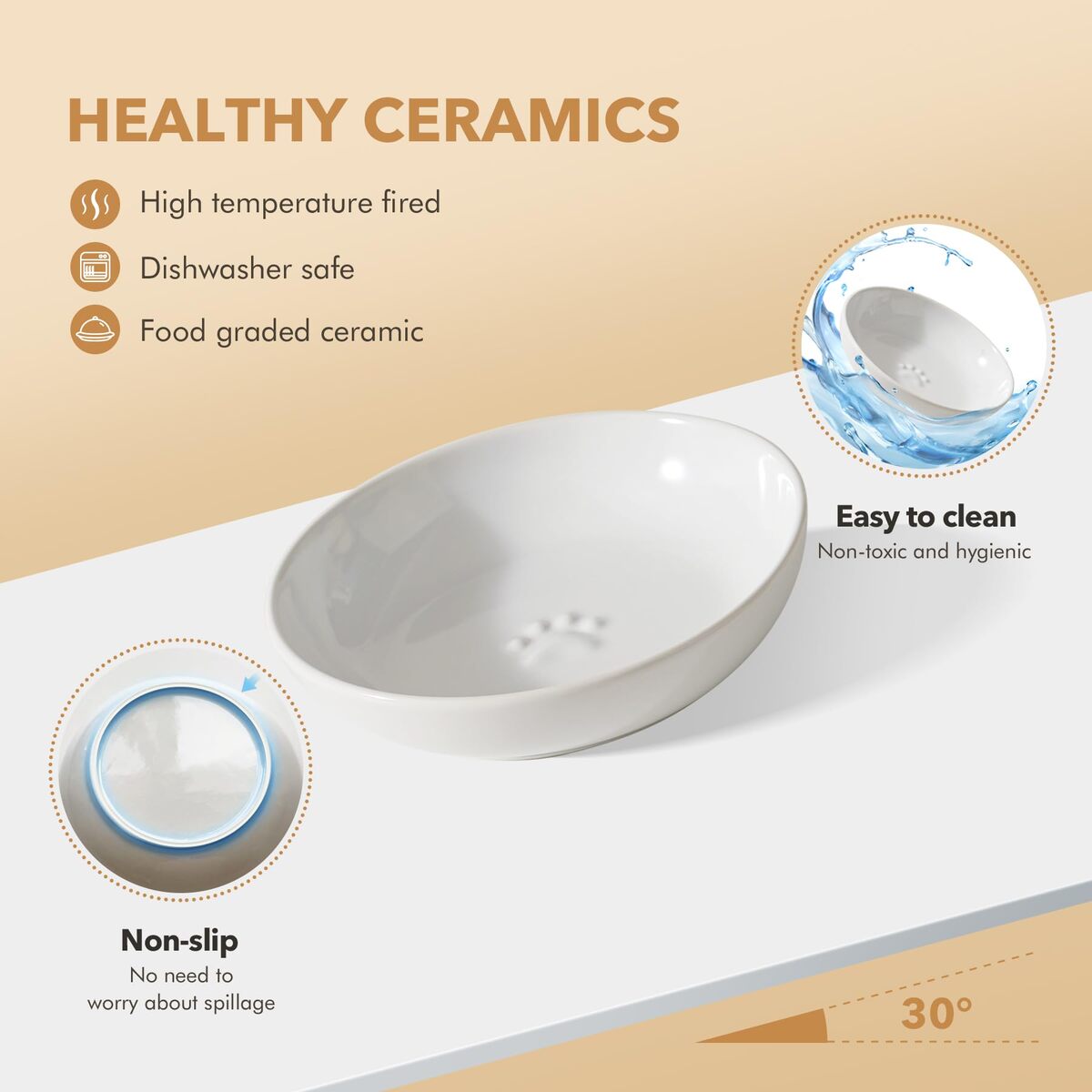 Havniva Elevated Ceramic Cat Dish Paw Print Wide Whisker Friendly Anti-Slip Food