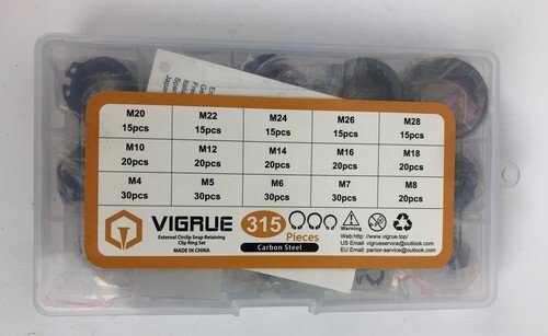 VIGRUE 315 Pieces External Circlip Snap Retaining Clip Ring Set Carbon Steel