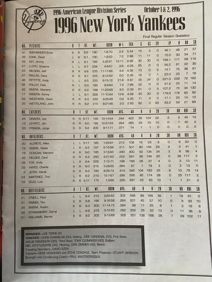 New York Yankees 1996 American League Division Series Program *Good Condition cc