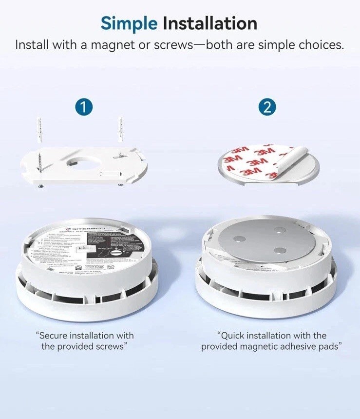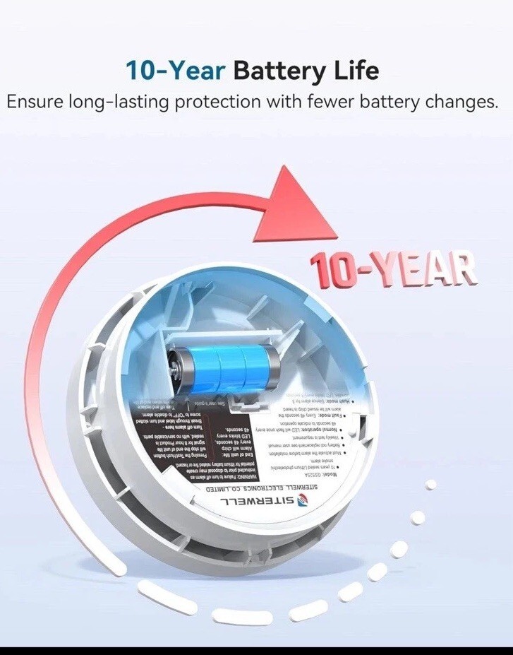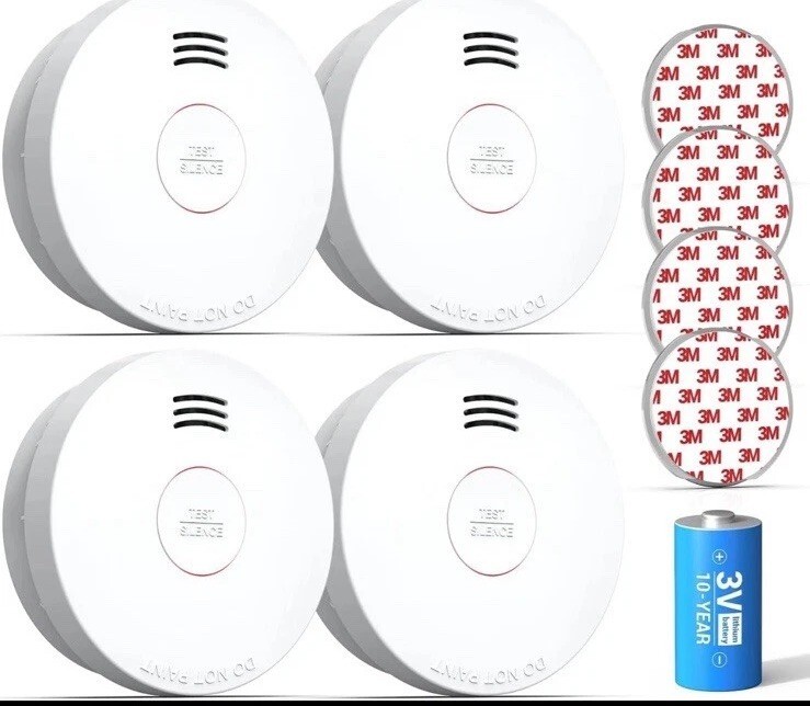 SITERWELL Compact 10 Year Battery Powered Smoke Detector 4 Pack