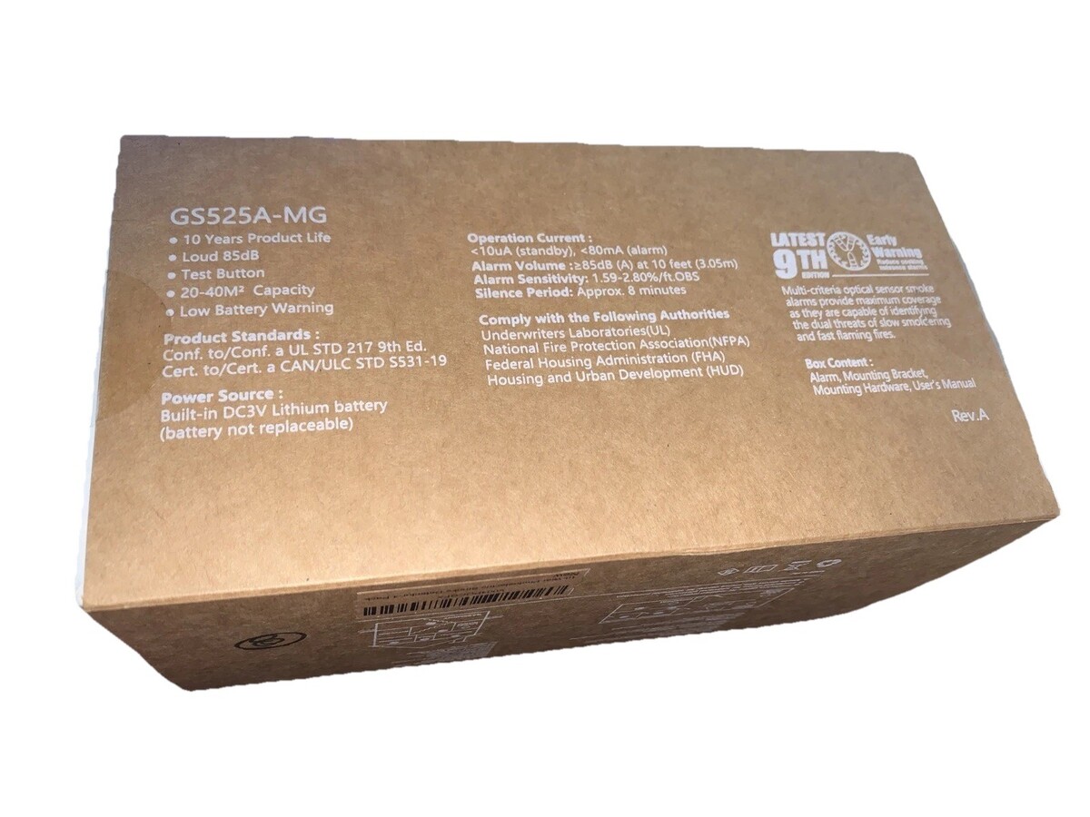 The SITERWELL Compact 10 Year Battery Powered Smoke Detector 4 Pack is a reliable and essential home security device. These smoke alarms are powered by a single battery that has a 10-year lifespan, ensuring continuous protection for your home. With a photoelectric smoke sensor, these detectors provide efficient and accurate detection of smoke, alarm for over 85 db. The package includes 4 units of the GS525A model, manufactured by Siterwell, with a warranty of 10 years. This product offers peace of mind and safety for your home for the next 10 years.