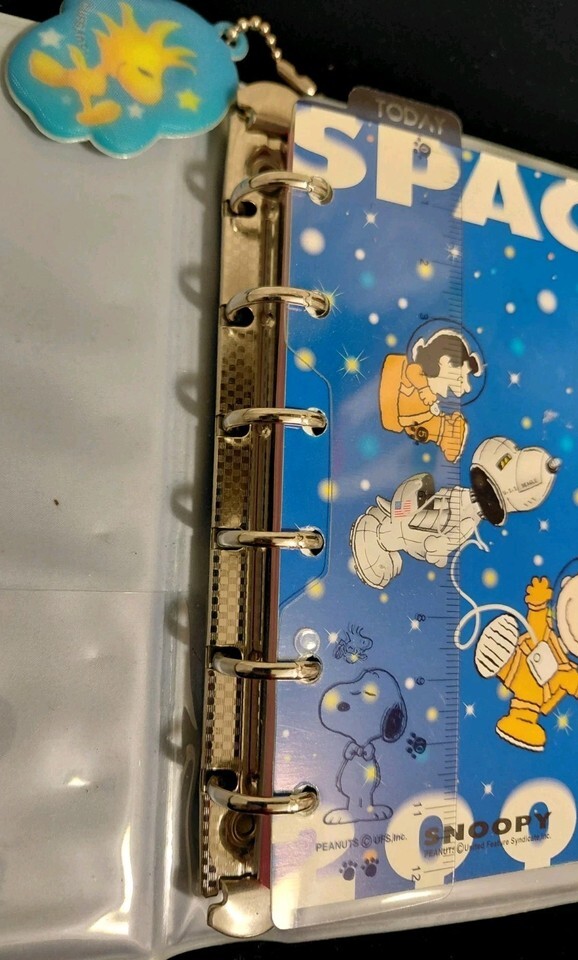 Vintage Snoopy Woodstock Puffy Diary Binder 2000 Space Theme + Stickers & Charm