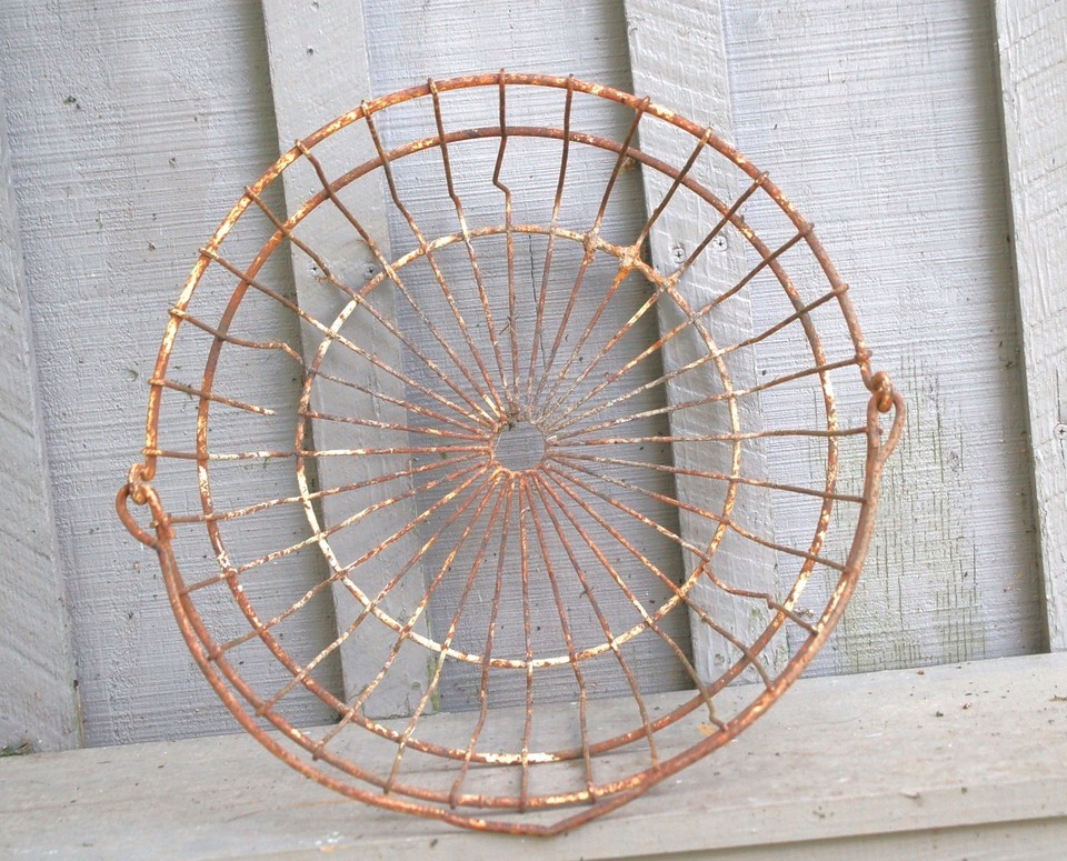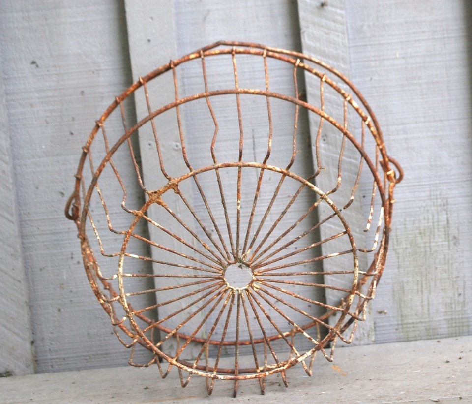 Primitive Rustic Gathering Egg Basket Planter Farmhouse Heavy Metal