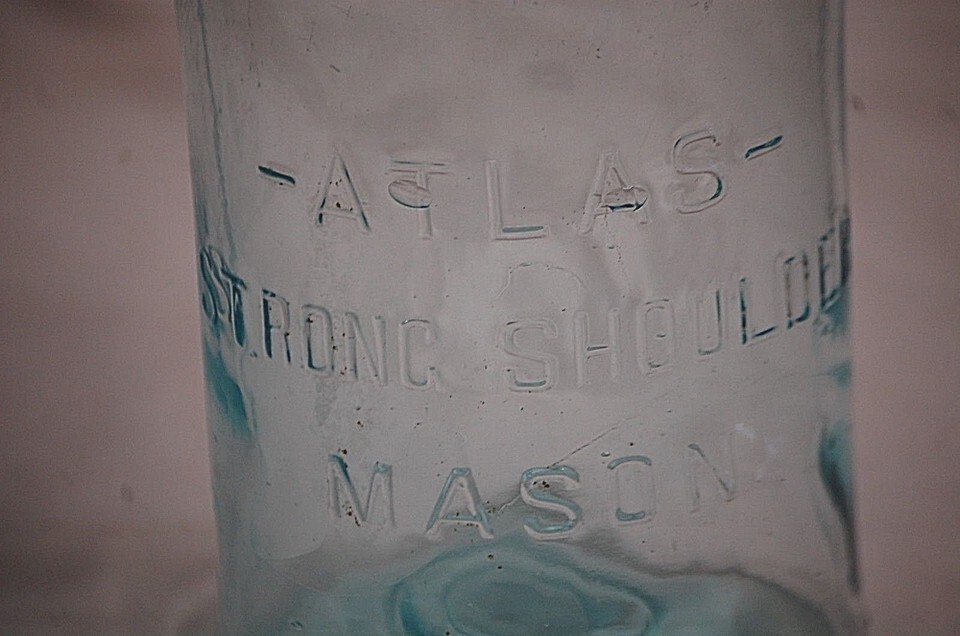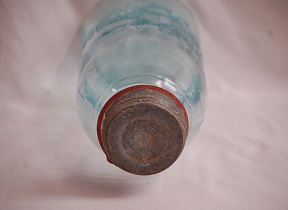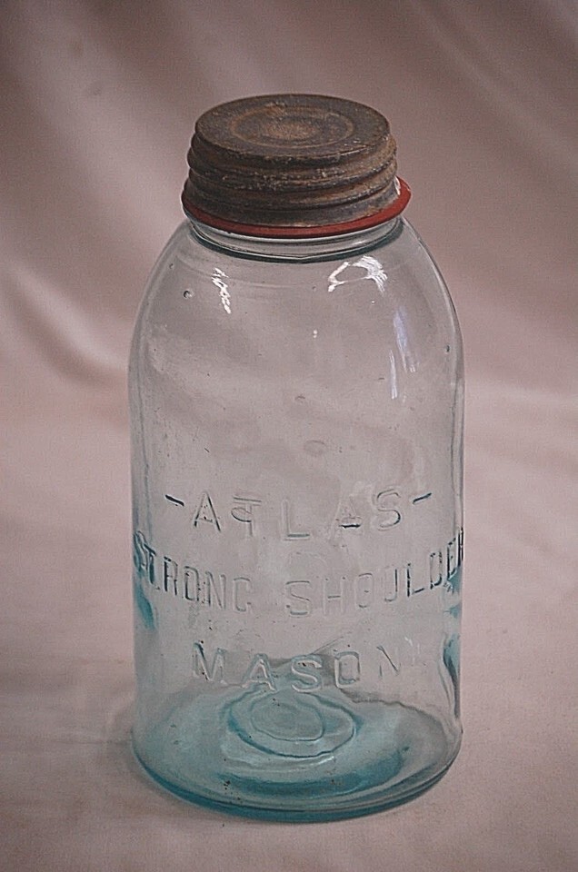 Blue Atlas Strong Shoulder Mason Glass Canning Jar w Zinc Lid 2 Quart Vintage