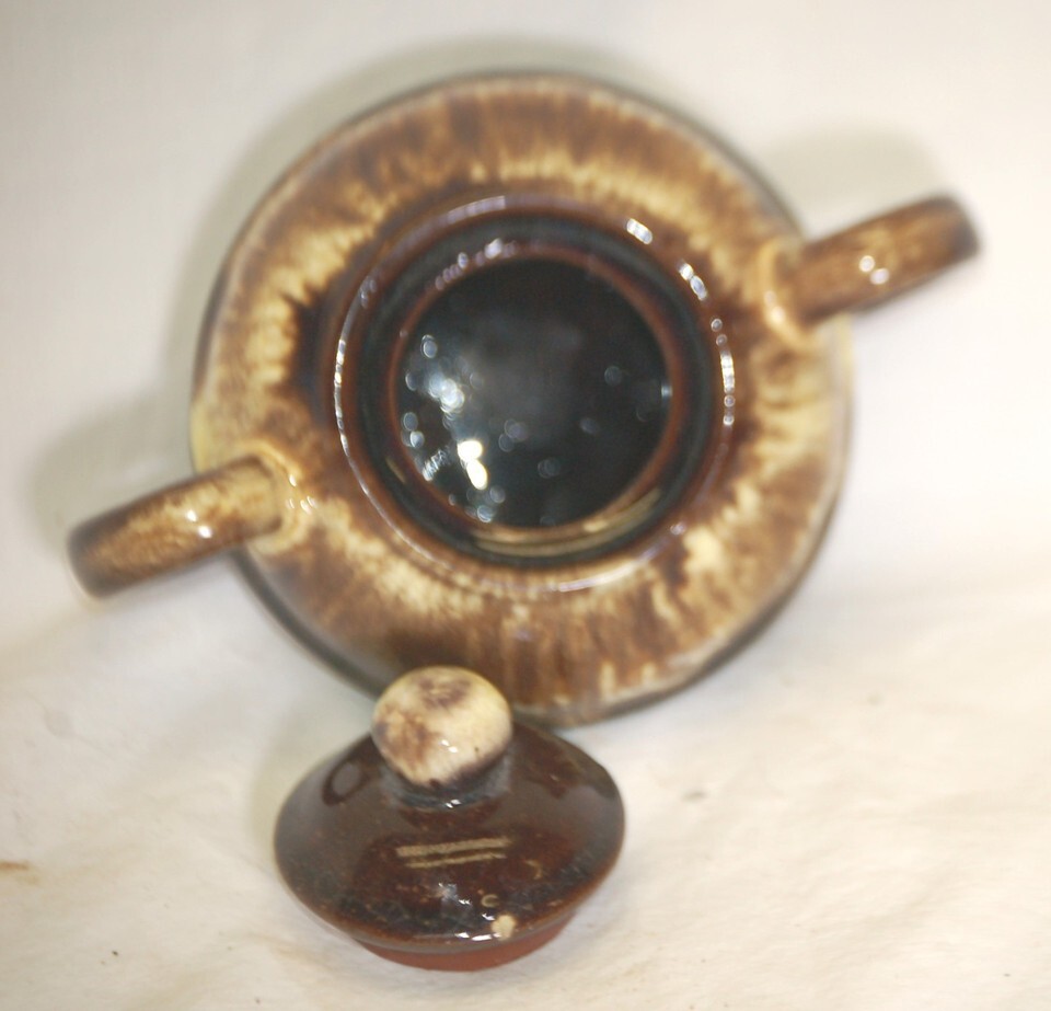 Brown Drip Mini Sugar Bowl Redware 3 Footed Japan