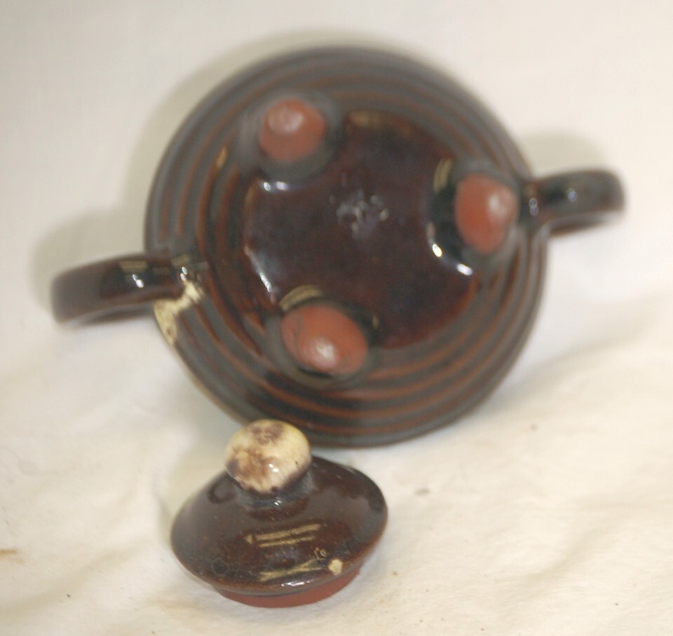 Brown Drip Mini Sugar Bowl Redware 3 Footed and similar items