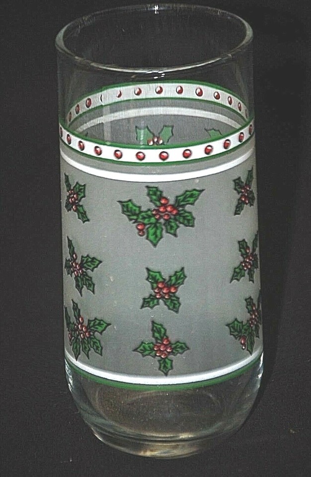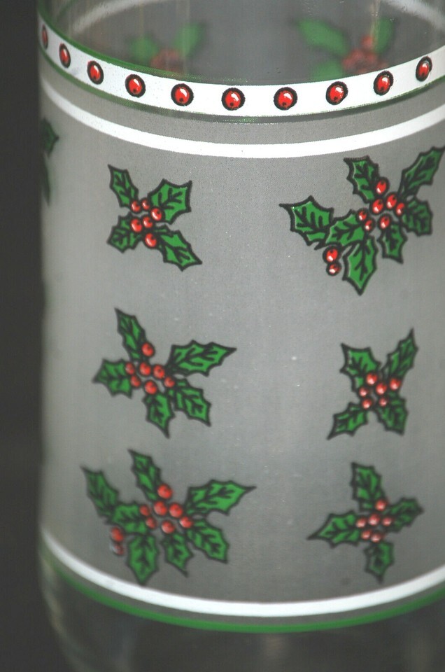 Christmas Red & Green Holly & Berry Tumblers w Frosted Panel Tableware Xmas Decr