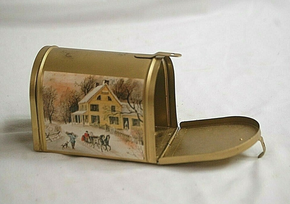 Currier & Ives Metal Tin Mail Box w Red and similar items