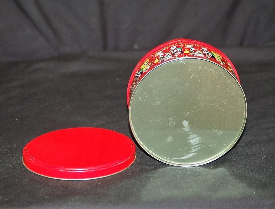 Teddy Bears Red Lithograph Tin Can with Lid and similar items