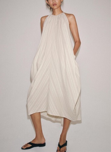 Zara Striped Linen Blend Halter Dress Women and 50 similar items