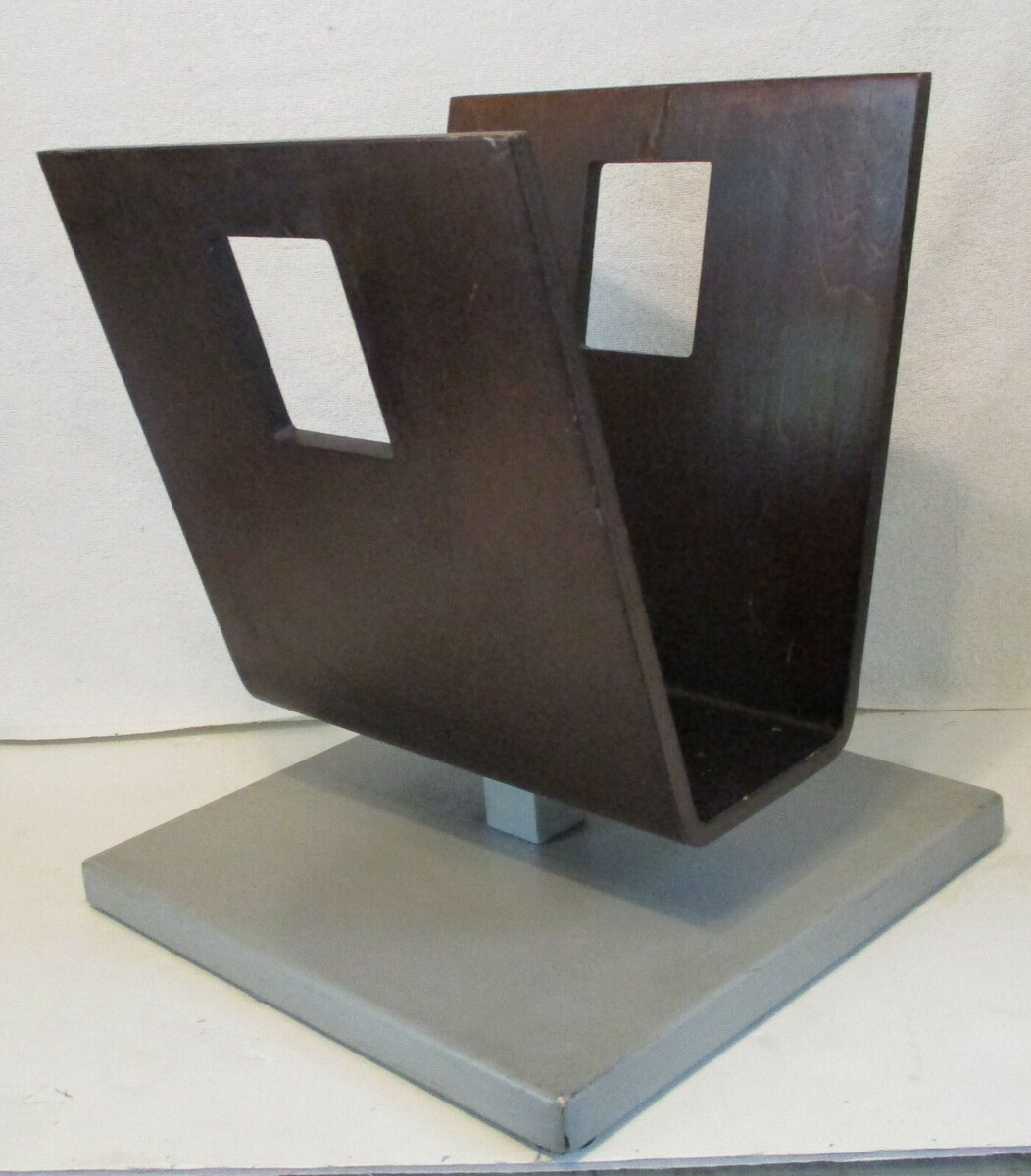 Mid-Century Modern Industrial Age Wood and Steel Magazine Rack