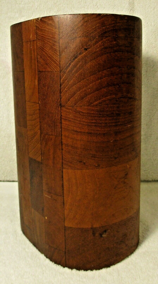 Vintage Siamese Brown Staved Teak Vase Atapco Danish Modern