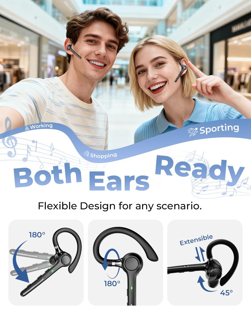 Bluetooth 5.4 Headset with Enhanced Noise Cancellation -- Ngosd high-performance bluetooth headset is built with the latest Bluetooth 5.4, enabling fast, stable pairing with computers, cell phones, and tablets?no lag for calls or audio.Upgraded noise-canceling mic filters out 90% of background noise, making it the ideal bluetooth headset with microphone for work, meetings, or trucker bluetooth headset use?you?ll sound crisp even in noisy environments.,USB Adapter for Stable Connection -- Tired of spotty connections with other bluetooth earpiece models?Ngsod bluetooth headset with mic ensuring rock-solid wireless performance.The adapter ensures consistent signal even in low-Bluetooth areas, making it ideal as a trucker bluetooth headset or wireless headset with mic for work (Zoom/Teams calls). It?s a key feature that sets this headset apart from ordinary bluetooth headphones with mic.,Wear All Day Without Pain -- The market?s lightest bluetooth headset (just 0.39oz!) features an ergonomic design that fits comfortably in your ear?no more soreness after a full workday. Its ergonomic in-ear shape fits snugly without pressure, whether you?re using it as a bluetooth earpiece for commutes or a bluetooth headset for work marathons. This combination of light weight and thoughtful design makes it far more comfortable than standard headsets with microphone for work.,50H Talk Time 200H Standby -- Ngsod headset wireless bluetooth boasts industry-leading battery performance: 50 hours talk time and 200 hours of standby, all powered by a portable charging case. The built-in LED digital display lets you check battery levels at a glance?no guessing when to recharge. For anyone needing a reliable bluetooth headset that keeps up with long workdays, this battery setup is a game-changer.,Hands-Free Calling Independent Mute -- Ngsod wireless headset is built for convenience: it supports full hands-free operation (answer/hang up with one tap) and has an independent mute button for quick silencing during meetings. As a bluetooth headset with mic, it?s ideal for multitasking?type, drive, or take notes while on calls?making it a practical choice for trucker headset use, office work, or remote jobs. Every feature is designed to make daily use easier.