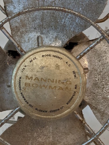 1950 8 Inch manning bowman Argent 085002 Table Bureau Fan Travail