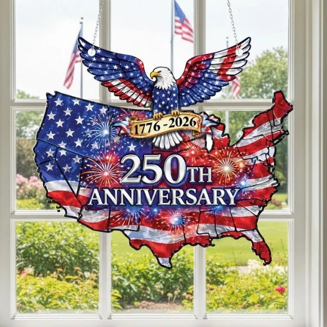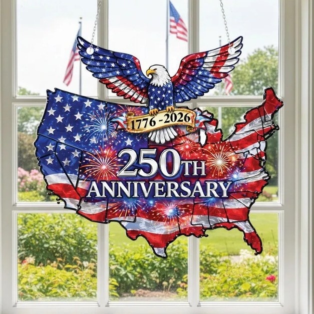 1.Celebrate America's 250th Anniversary with vibrant, eye-catching acrylic window decor featuring iconic patriotic designs.