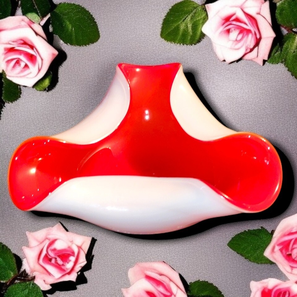 Wales Japan Red White Cased Glass Ashtray Dish Bowl MCM Vintage