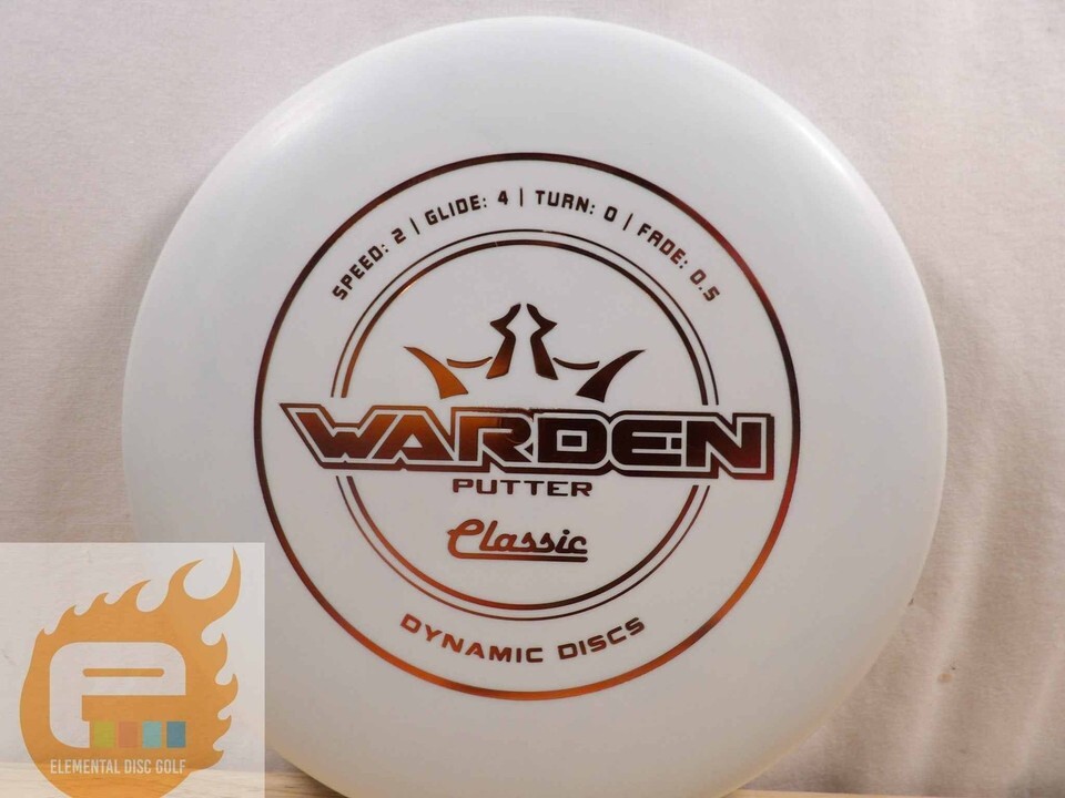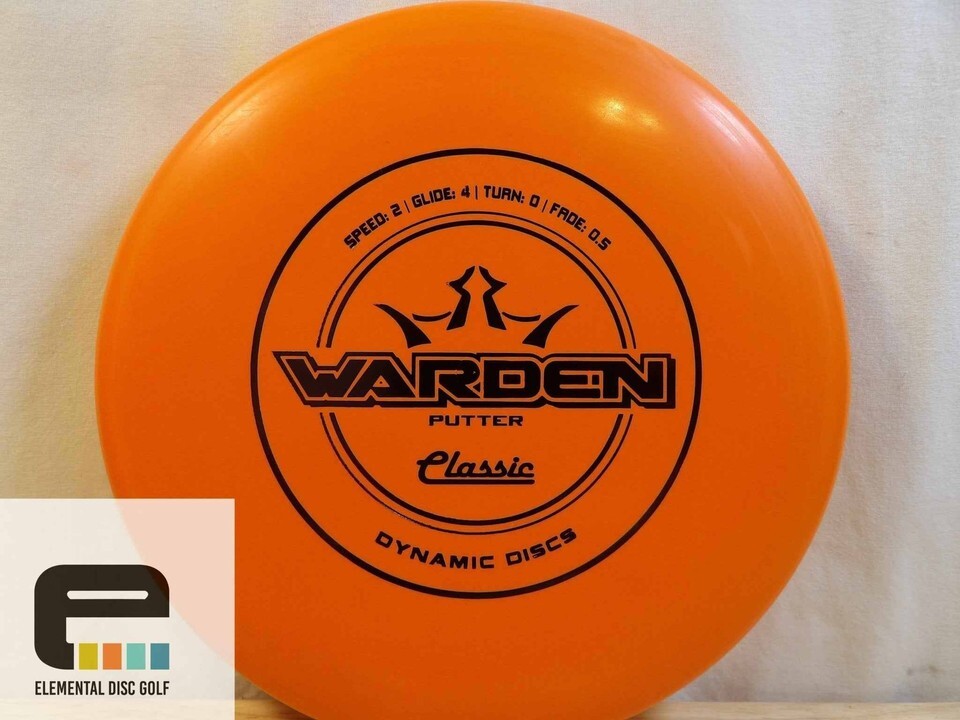 Dynamic Discs Classic Warden (2/4/0/0.5)The Dynamic Discs Classic Warden is a beadless putter known for its smooth release and reliable straight flight. With flight numbers of 2 / 4 / 0 / 0.5, it offers a neutral, laser-straight path with minimal fade, making it an excellent choice for both putting and short approach shots. The Warden glides effortlessly toward the basket, providing consistent accuracy and distance control for players of all skill levels.Made from Classic plastic, this disc has a firm yet grippy feel that promotes a clean release and confident grip, especially during pressure putts. It maintains a comfortable profile in the hand, giving you reliable performance whether you?re on the putting green or lining up a touchy approach.If you want a dependable, straight-flying putter with a comfortable beadless design, the Classic Warden is an ideal choice to elevate your short game.