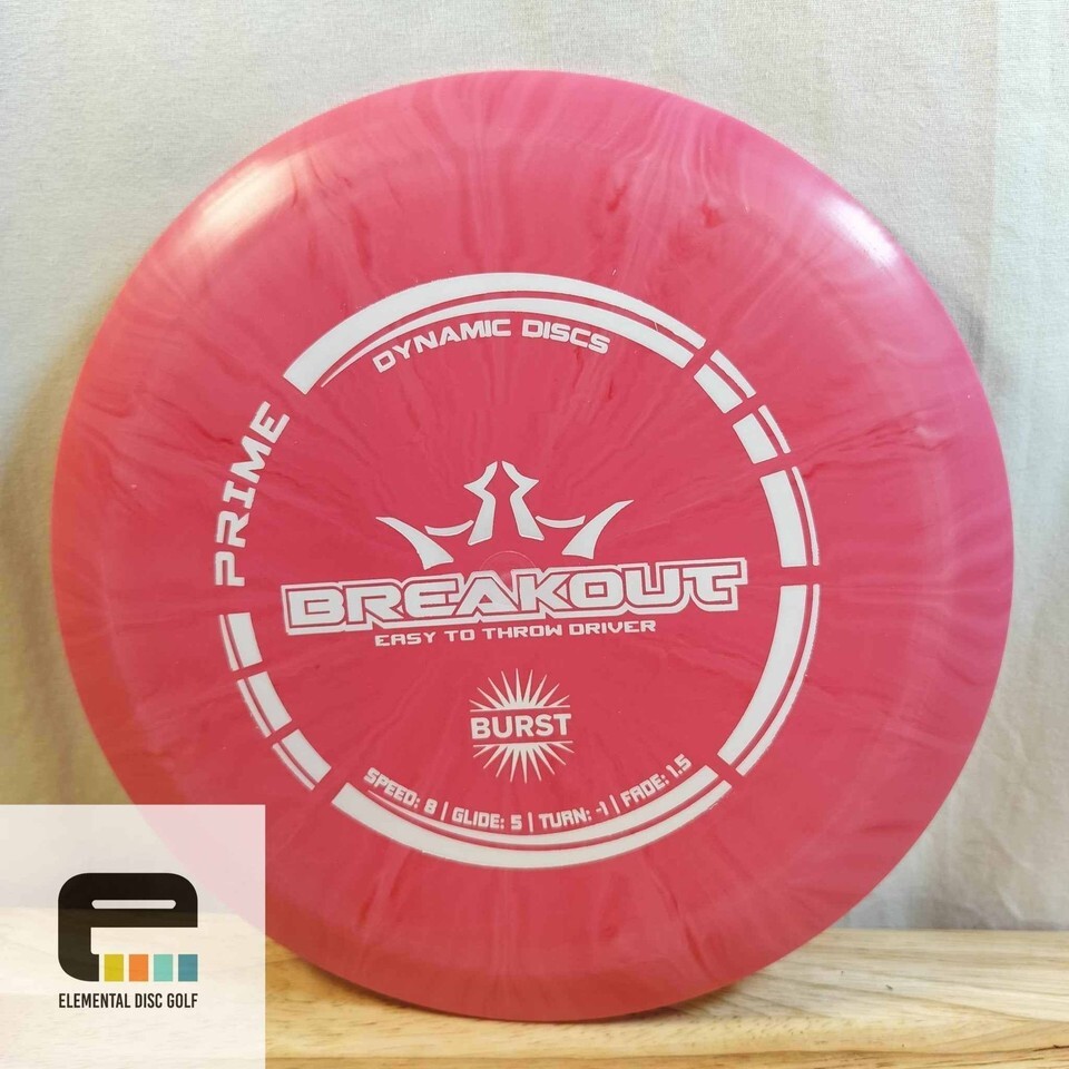 Dynamic Discs Prime Burst Breakout (8/5/-1/1.5)The Dynamic Discs Prime Burst Breakout is an easy-to-throw fairway driver designed for smooth, controlled distance and excellent glide. With flight numbers 8 | 5 | -1 | 1.5, the Breakout offers a gentle high-speed turn followed by a mild, dependable fade, making it ideal for straight fairway drives, hyzer flips, and controlled turnover shots. Its manageable speed and forgiving flight make it a great option for players who want distance without sacrificing accuracy. Molded in Dynamic Discs? Prime Burst plastic, this disc features a grippy baseline blend with beautiful burst color patterns radiating across the flight plate. Prime plastic provides excellent grip and a comfortable feel in the hand, helping players achieve confident releases in all weather conditions. As the disc seasons, it develops additional glide and turn, making it even more workable for shaping technical fairway lines. The Breakout is an excellent choice for beginners looking for their first reliable fairway driver, while experienced players can use it as a versatile control driver for finesse shots. It excels on hyzer flips that stand up and glide, controlled turnover drives through wooded fairways, and straight fairway shots that require accuracy. If you?re looking for a smooth, glidey driver that is easy to control and fun to throw, the Dynamic Discs Prime Burst Breakout is a fantastic addition to any disc golf bag.