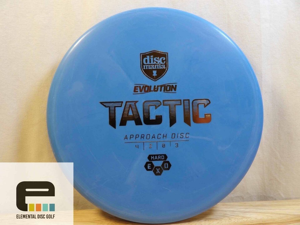 Discmania Exo Hard Tactic (4/2/0/3)The Discmania Exo Hard Tactic is a truly overstable throwing putter designed to defy wind and deliver consistent, precise putts and sharp approaches. Built for players who want to push through gusts and keep their line, it locks in your intended path with a predictable finish every time.Low glide, high control: the exceptionally low glide minimizes wind drift, so your lines stay true even when the breeze picks up. This makes it easier to commit to tough, windy puts and to finish with a dependable fade that lands where you aim.Flight numbers: 4 / 2 / 0 / 3. This combination signals a faster putter with solid stability and a definitive finish, ideal for hyzers, longer approach lines, and money-in-the-circle puts in challenging conditions.What sets the Exo Hard Tactic apart Overstable reliability for wind-facing shots, headwinds, and crosswinds where other putters wobble off line Exceptional control thanks to low glide, helping you hold lines through gusts and execute precise finishes Versatile shot-making capabilities from controlled approaches to confident putting in tight or open spaces Plastic options with Discmania?s Exo lineup ? the Exo Hard variant provides a dense, grippy feel while other Exo plastics let you tailor grip and feel to your throwing style Consistent performance across scenarios, so you can rely on the Tactic as a trusted partner in your bag Ideal use cases Open courses with strong winds where you need a disc that fights drift and finishes predictably Tight fairways requiring a controlled hyzer-to-fade finish to park nearby baskets Longer putt attempts and approach shots where a steady, strong fade ensures you stay on your planned line Windy circle-play, where confidence and repeatable results matter more than raw speed Who should consider the Exo Hard Tactic Players who prize wind-resistant putts and dependable fades over pure distance Forehand specialists seeking a stable tool for controlled approaches and finishing power Disc golfers who want a single, reliable putter that handles variable wind and still lands on the intended line Practical tips for getting the most from your Tactic Grip and stance that emphasize a clean release to maximize the disc?s low glide and consistent fade Practice in increasing wind conditions to build trust in its line and finish Pair with a straighter fairway driver or midrange in your bag to create a complete wind-handling arsenal Prepare yourself for windy rounds with a putter that won?t waver. The Discmania Exo Hard Tactic is built to deliver dependable lines, controlled finishes, and confidence on every shot you face?from the circle to the long hyzer.