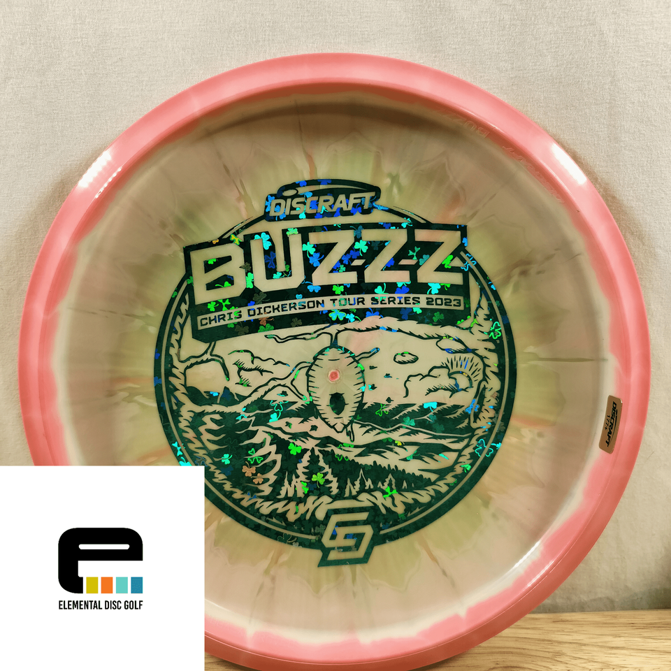Discraft ESP Buzzz (Chris Dickerson 2023) 5/5/-1/1The Discraft ESP Buzzz Chris Dickerson 2023 Tour Series is a premium midrange disc that combines trusted performance with collectible appeal. Known as one of the most reliable midrange discs in the sport, the Buzzz delivers smooth, consistent flights with flight numbers 5 / 5 / -1 / 1. This makes it the go-to choice for players who want a disc that can hold any line?whether you?re throwing straight shots through tight fairways, smooth turnovers, or controlled hyzers.Crafted in ESP plastic, this special edition Buzzz offers excellent grip, durability, and beautiful swirled color patterns that make every disc unique. ESP plastic is one of Discraft?s most popular blends, giving players a professional feel with long-lasting performance.This 2023 Tour Series edition supports Chris Dickerson, one of Discraft?s elite touring professionals. By picking up this disc, you?re not only adding a high-performance midrange to your bag, but also a limited-edition collectible that represents one of the game?s most consistent pros.Perfect for all skill levels, the Discraft ESP Buzzz Chris Dickerson 2023 is a must-have for players who demand control, versatility, and style from their discs.